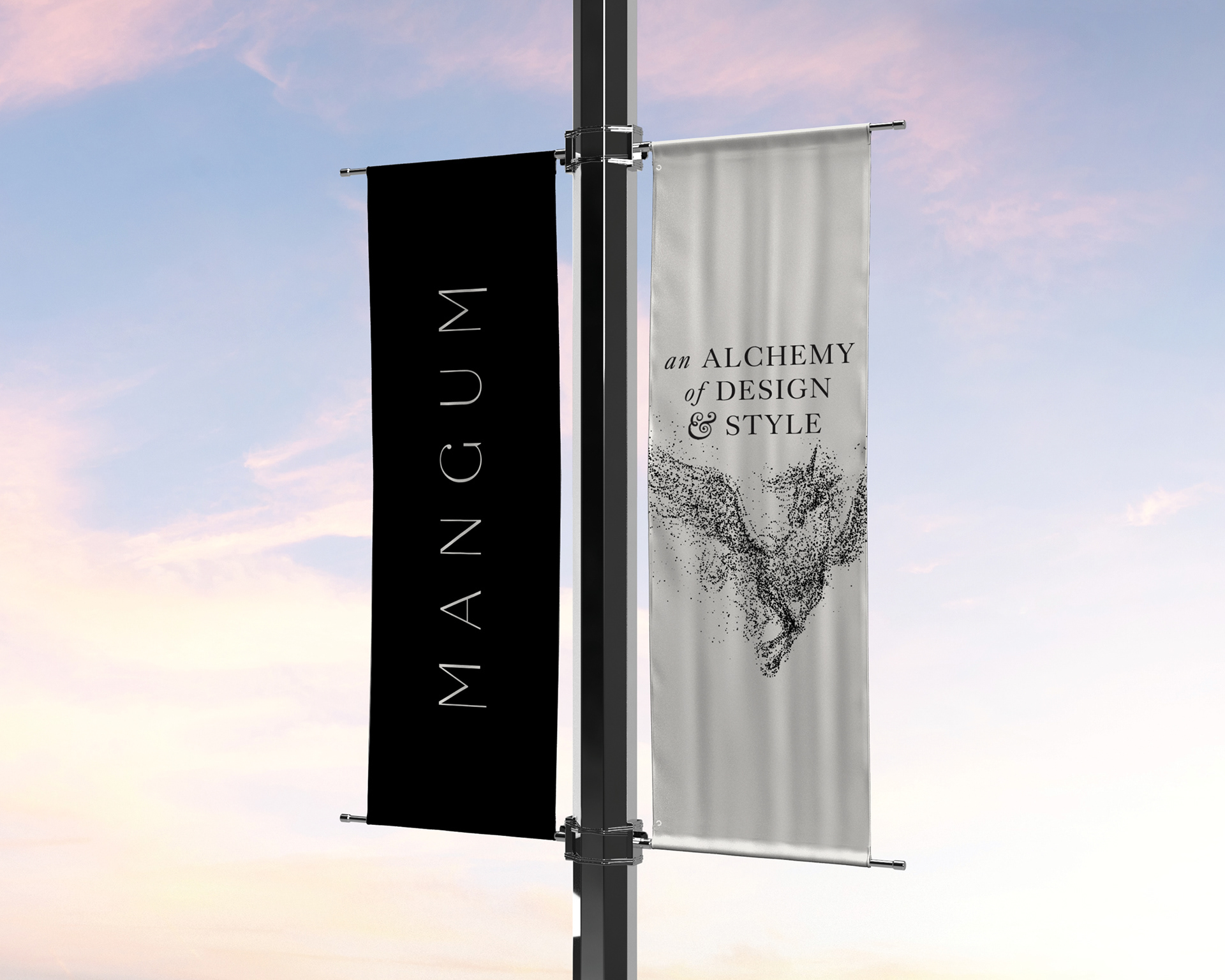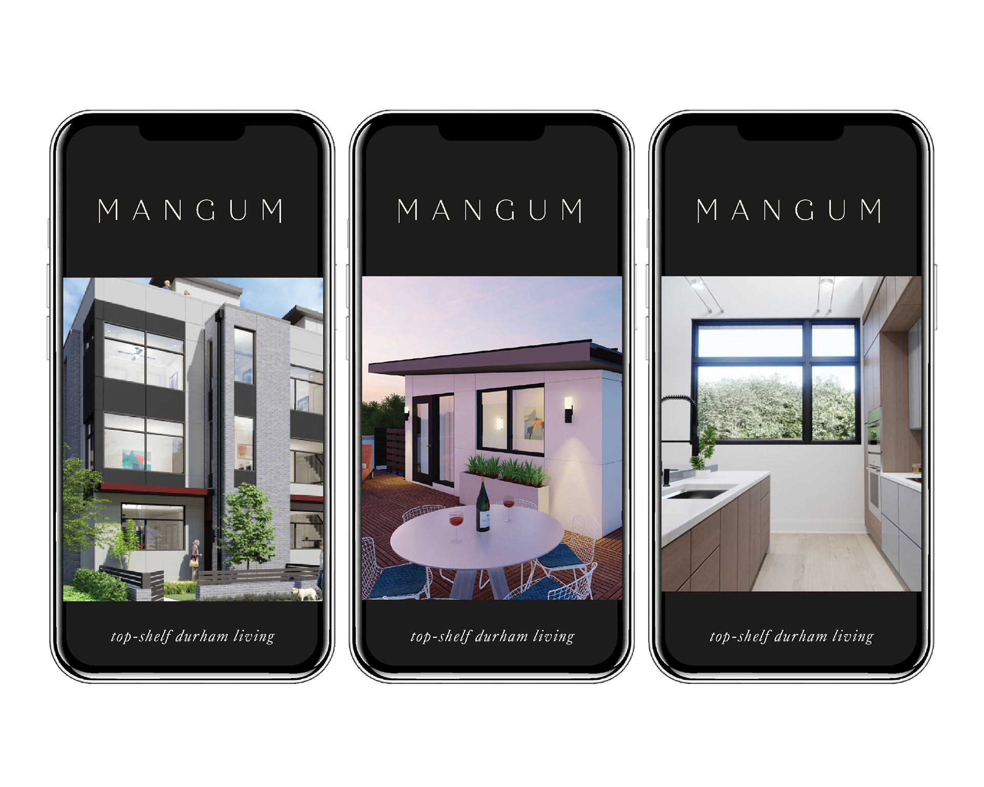 Brand identity development and logo design for Mangum, a new home community in Durham, NC with homes starting at $1,300,000.